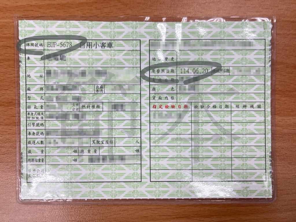 📅 新車行照之原發照日期為:2025 / 5 / 1 ~2025 / 12 / 31