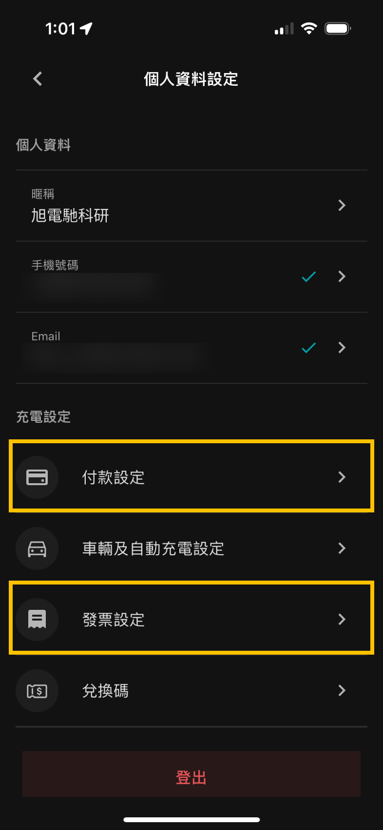 9. 欲使用充電服務需完成手機、付款和發票設定